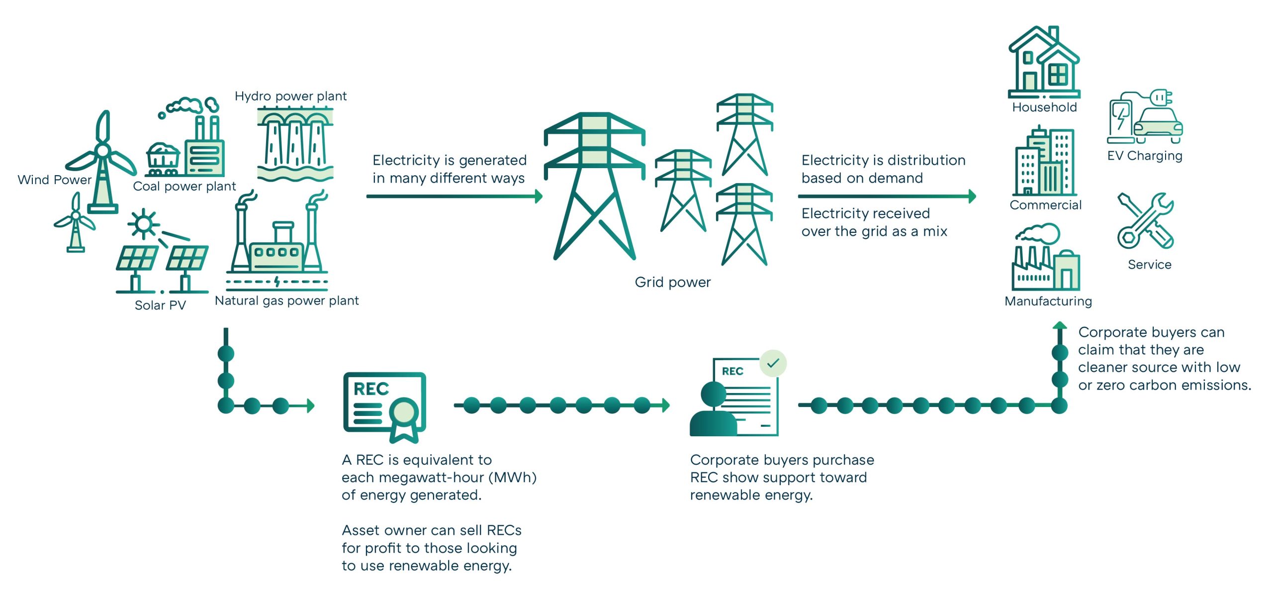 RECs enable you to claim that the electricity you consume originates from a renewable resource with minimal or zero emissions. In fact, whenever someone claims to utilize renewable electricity, RECs are involved.