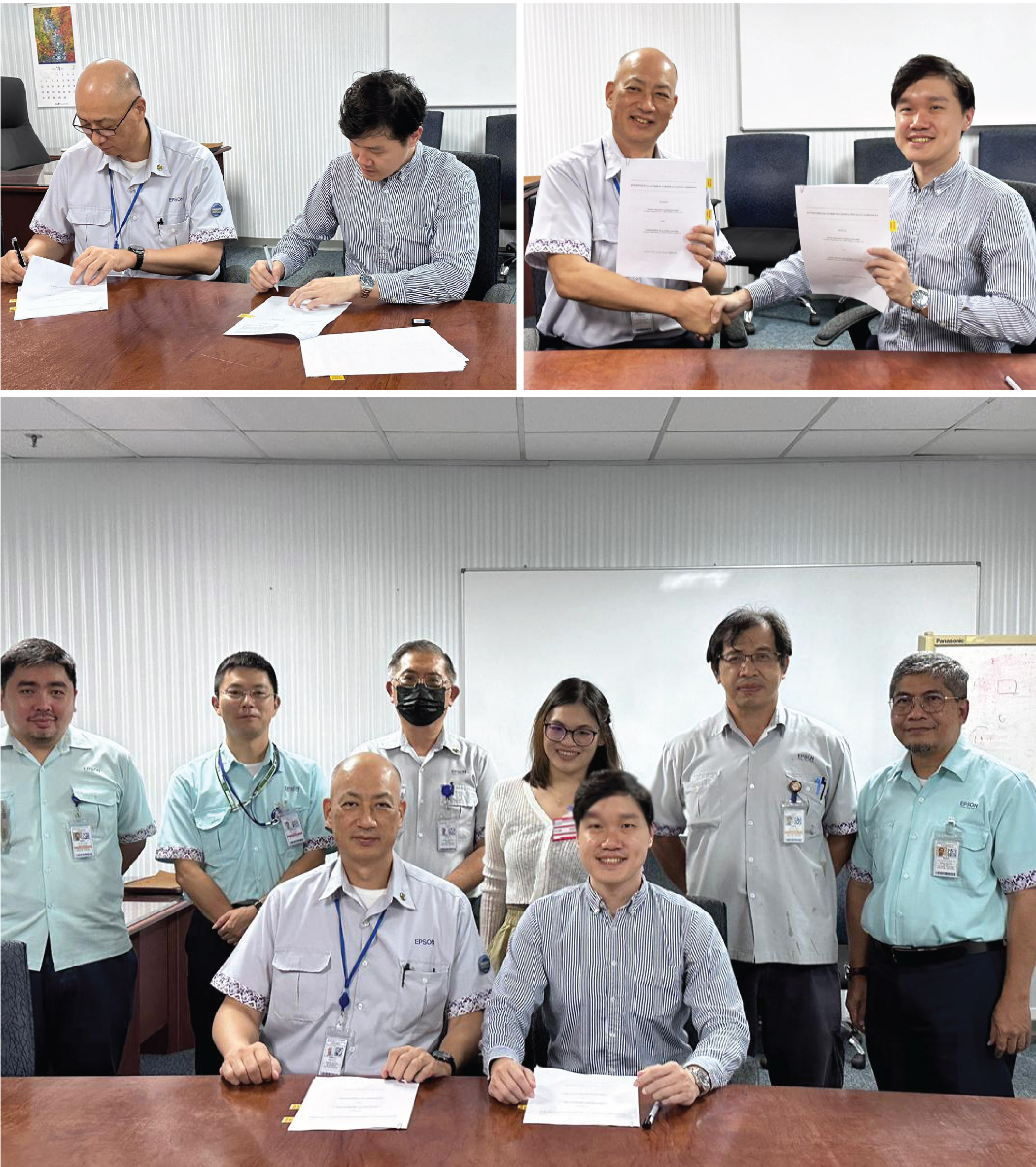 The Purchase of Renewable Energy Certificates (RECs) Agreement was signed by Mr. Shiro Ogura, Managing Director of Epson Precision (Johor) (seated on the left), and Reik Ong, Managing Director of Saxon Renewables (seated on the right).